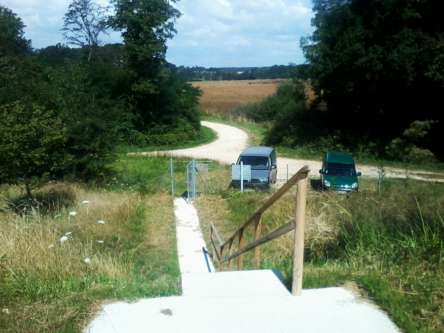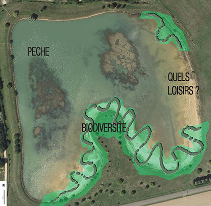 2/ Mieux insérer dans son contexte l’étang artificiel. Le grand talus gâche en effet le belvédère sur le grand paysage ;